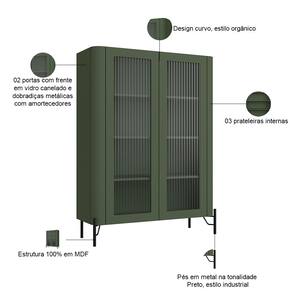 Com portas de vidro canelado, essa cristaleira moderna adiciona um toque de refinamento, enquanto protege e exibe seus objetos mais especiais - desde louças finas até taças e decorações. Seu design orgânico, com linhas curvas, harmoniza perfeitamente com os pés metálicos de estilo industrial, criando um contraste moderno e cheio de personalidade. O amplo espaço interno, em 100% MDF, oferece organização generosa, com prateleiras firmes para adaptar-se às suas necessidades.