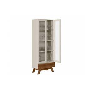 Cristaleira Sala Jantar Marsala C/ 2 Portas C/ Vídro E 1 Gaveta 70cm Freijó/off White - Linea