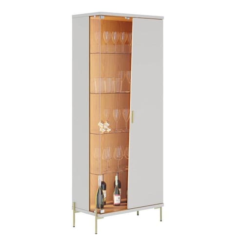 Cristaleira com Porta de Vidro e Led Sena 180 cm Off White Matte / Freijó - Colibri