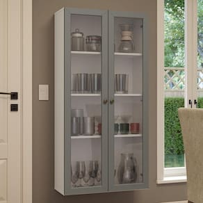 Esta versão foi projetada para instalação suspensa na parede, acompanhando um kit de fixação, que possibilita ajustar a altura da cristaleira conforme sua preferência, garantindo praticidade e otimização do espaço.