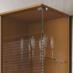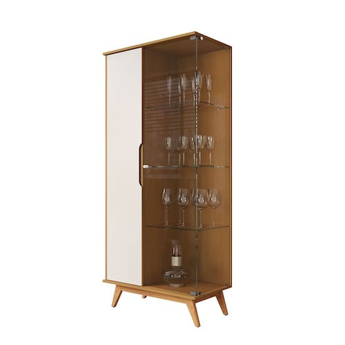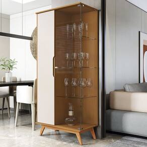 O modelo conta com duas portas de vidro que garantem visibilidade total dos itens expostos, além de prateleiras internas bem distribuídas para organizar taças, louças, bebidas ou objetos decorativos com estilo.