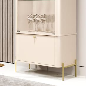 A Cristaleira Tucupí da JB Bechara é uma peça sofisticada e funcional, perfeita para quem busca aliar design moderno à praticidade. Seu formato curvado confere um toque de elegância, enquanto os puxadores delicados e os pés em metal proporcionam um contraste contemporâneo e robusto.
