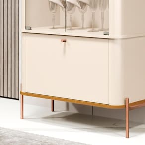 A Cristaleira Tucupí da JB Bechara é uma peça sofisticada e funcional, perfeita para quem busca aliar design moderno à praticidade. Seu formato curvado confere um toque de elegância, enquanto os puxadores delicados e os pés em metal proporcionam um contraste contemporâneo e robusto.