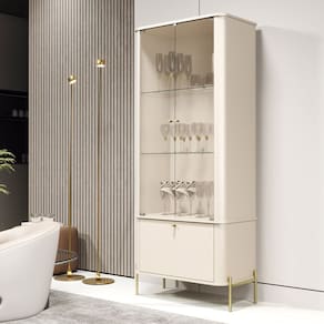 Seu interior conta com prateleiras internas bem distribuídas, ideais para acomodar taças, louças, bebidas e objetos decorativos com excelente visibilidade e organização.