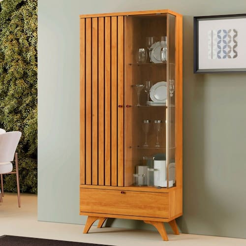O(a) Cristaleira Versa 1 Porta Ripada Naturalle - Mavaular é produzido em MDF e MDP na escala de brilho Fosco, e possui um grau de dificuldade de montagem: Médio.