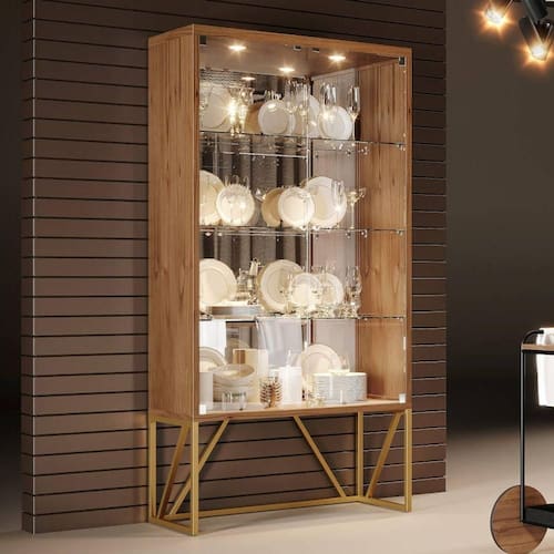 Cristaleira de Vidro e Madeira com Puxador Cristal - Agnes - Móveis Montanhês