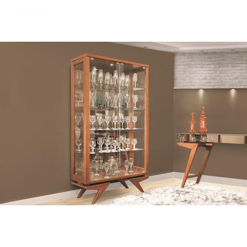 Cristaleira de Vidro e Madeira com Puxador Cristal - Pérola - Móveis Montanhês