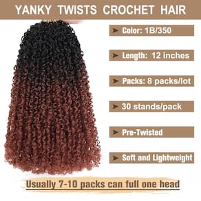 Crochet Hair COOKOO Pre Twisted Yanky Twist 30 cm, 8 pacotes