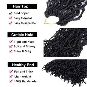 Característica: Cabelo de crochê super longo Goddess Locs, feito à mão (não fabricado), cabelo de crochê pré-enrolado. Lavável e não é fácil de separar, você pode balançar à vontade.