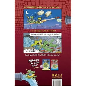 Os Crocotives estão de volta! Com a corda toda... e com água até o focinho! Quando o quartel-general da R.O.U.P.A. é venda em lote, Mango & Brash são acionados para salvar o dia. Mas será que eles vão dar conta? Crocotives: Por água abaixo é o segundo volume da divertida e engraçada série Crocotives. Deu mais ruim ainda? Chama de novo os Crocotives! Os vilões ainda têm pesadelos com eles. Os psicólogos continuam faturando com as sessões de terapia dos bandidos. Os malfeitores? Ah… esses já não sabem para onde correr. Mango & Brash estão de volta! E desta vez é pessoal! O quartel-general da R.O.U.P.A. foi invadido, e nossa dupla favorita de detetives Crocs precisa agir rápido para impedir consequências catastróficas. Porque o Crackerdilo também está de volta, e tudo o que ele mais quer é parar de biscoitar para começar a atacar!* *A editora gostaria de novamente reiterar que não se responsabiliza por leitores que irão embarcar na carreira de superespiões após conhecerem os Crocotives. O quartel-general da Galera Record certamente não está cheio de espiões disfarçados. “Eu terei a minha vingança!” – Crackerdilo “Mango & Brash são os meus melhores agentes. É impossível uma missão com eles ir por água abaixo.” – Inspetor-Geral da R.O.U.P.A, instantes antes da missão ir por água abaixo. Marca: Não Informado