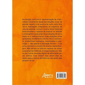 Na direção contrária à representação de criatividade unicamente ligada a produções raras, de grande impacto e de autoria do outro, este livro narra realizações integrantes da trajetória de vida de pessoas comuns. A obra reúne histórias emocionantes e capazes de inspirar os leitores a enxergarem suas próprias produções de outro modo ou a redirecionarem suas atuações como aprendizes de diferentes ofícios. Para o momento, predominam exemplos relacionados à educação — não apenas à educação formal — e às artes, também no âmbito de ensino e aprendizagem. Não seriam os leitores capazes de contar suas próprias histórias, protagonizadas por eles ou por outras pessoas dignas de admiração por um público mais amplo? Que assim eles se vejam após a leitura de histórias nas quais eles possam se ver. Marca: ARTERA EDITORA