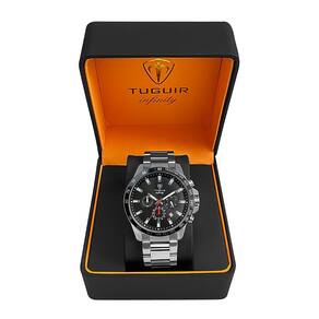 Marca: Tuguir Categoria: Analógico Analógico: Sim (1 Horário) Ponteiros Fluorescentes: Sim Digital: Não Calendário: Sim Despertador: Não Mostra o Dia da Semana: Sim Mostra o Dia do Mês: Não Cronômetro: Sim Contador Regressivo: Não Luz: Não Resistente à Água: 5 ATM - Respingos: Sim - Chuva: Sim - Lavar Carro: Sim - Lavar Louça: Sim - Natação: Sim - Mergulho: Não Característica do Vidro: Cristal Mineral Tipo de Fecho: Dobrável com Botão Cor da Caixa: Prata Material da Caixa: Aço Formato da Caixa: Redondo Diâmetro da Caixa: 42,00 (mm) Espessura da Caixa: 12,00 (mm) Cor da Pulseira: Prata Material da Pulseira: Aço Largura da Pulseira: 21,00 (mm) Comprimento Máximo da Pulseira: 240,00 (mm) Alimentação: Bateria Interna Peso Líquido: 0,160 Kg Modelo: Infinity 6116H Cor Predominante: Prata Cor Diferencial: Preto Garantia: 12 Meses