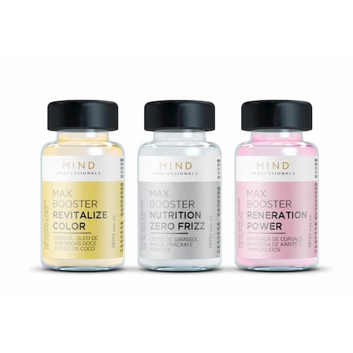 MAX BOOSTER NUTRITION REGENERATION POWER - Mácara Líquida de Reconstrução, possui Queratina, Pantenol, Complexo de Aminoácidos, Blend de Óleos e Mica. Possui ação de Reconstrução Imediata, Nutrição e Fortalecimento, Hidratação Profunda, Proteção e Regeneração Capilar, Doador de Brilho e Maciez.