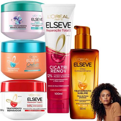 Cronograma Elseve Cicatri Renov Óleo Extraordinário Nutrição Bem vindo a a loja Flocus. É um prazer tê-lo a como nosso a cliente ATENÇÃO: Anúncio variável. Escolha os itens que melhor lhe atender para montar seu cronograma capilar com as linhas Elseve de Loreal Paris CONTEÚDO DO KIT: 1 Creme de Tratamento para Hidratação - 300g 1 Creme de Tratamento para Nutrição - 300g 1 Creme de Tratamento para Reconstrução - 300g 1 Leave-in Tratamento Elseve Cicatri Renov Loréal Paris - 100ml 1 Óleo Extraordinário L'Oréal Paris Elseve - 100ml Para que serve o cronograma capilar O cronograma capilar serve para repor a massa capilar, lipídios oleosidade natural do cabelo , vitaminas, nutrientes e minerais perdidos pelos fios. Essa perda é causada por danos capilares como a poluição, químicas como alisamento e descoloração e uso excessivo de calor como secadores, modelador de cachos e chapinha. Quando o cabelo sofre esses danos, ele fica com uma aparência ressecada, com alta porosidade, quebradiço e áspero. Então, o cronograma capilar reverte essa situação. O cronograma capilar é dividido em 3 etapas. São elas: Hidratação, Nutrição e Reconstrução. Para uma dose extra e turbinada de hidratação, proteção e brilho, incluímos nesse kit o Elseve Óleo Extraordinário Nutrição e Leave-In Reparação Total 5. Glycolic Gloss: garante 3X mais gloss que resiste a 6 lavagens. Sua fórmula com pH Ácido rica em Ácido Glicólico, combate a porosidade e sela as cutículas para um cabelo visivelmente saudável e alinhado para um brilho gloss. cronograma: Por ser um tratamento com ácido, essa linha serve para Hidratação e Reconstrução . Hidra Hialurônico: preenche e retém hidratação profunda na fibra capilar para uma transformação instantânea dos fios. Com ação Preenchedora, retém a hidratação na fibra capilar por muito mais tempo, para manter o cabelo saudável, leve e solto. cronograma: Hidratação . Pure Hialurônico: para cabelos com raízes oleosas e pontas desidratadas, a linha Pure purifica as raízes e limpa profundamente a fibra capilar. Sua fórmula é rica em Ácido Salicílico, que garante o controle da oleosidade nas raízes, e Ácido Hialurônico que possui uma hidratação preenchedora profunda, do comprimento até as pontas. cronograma: Hidratação . Cachos Longos dos Sonhos: preenche o cabelo com nutrição profunda da raiz até as pontas, para tratar, selar e salvar os seus últimos 3 centímetros dos seus cachos. Ideal para cachos mais longos, fortes e definidos desde o primeiro uso. cronograma: Nutrição . Óleo Extraordinário: a linha foi desenvolvida para nutrir cabelos secos e opacos, promove suavidade infinita, brilho excepcional e vitalidade deslumbrante. Com a tecnologia de micro óleos de argan e marula nutre os fios, sem pesar. cronograma: Nutrição . Longo dos Sonhos: anti-corte age no comprimento dos cabelos, lacrando as pontas, salvando os últimos 3 centímetros. Repara os fios e sela as pontas, para que você diga adeus ao comprimento danificado, salvando os últimos centímetros para evitar o corte. cronograma: Reconstrução . Reparação Total 5: atua contra os principais danos: Quebra, Rigidez, Opacidade, Ressecamento e Pontas Duplas. Ajuda a reduzir fios quebradiços, trazendo mais brilho e flexibilidade ao cabelo. Remove as pontas duplas e recupera a estrutura da fibra deixando os fios uniformes, selados e protegidos como se fosse uma cicatrização da fibra capilar. cronograma: Reconstrução . Agradecemos por escolher a Loja Flocus e por confiar em nós para cuidar da beleza dos seus cabelos. Em caso de dúvidas, favor enviar sua pergunta Flocus