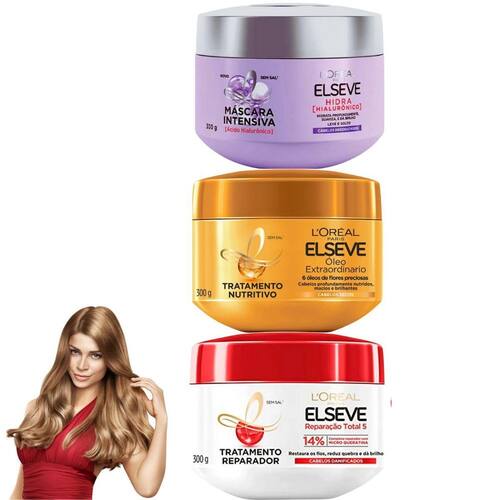 Cronograma Elseve Hidratação Nutrição Reconstrução Reparação Bem vindo a a loja Flocus. É um prazer tê-lo a como nosso a cliente ATENÇÃO: Anúncio variável. Escolha os itens que melhor lhe atender para montar seu cronograma capilar com as linhas Elseve de Loreal Paris CONTEÚDO DO KIT: 1 Creme de Tratamento para Hidratação - 300g 1 Creme de Tratamento para Nutrição - 300g 1 Creme de Tratamento para Reconstrução - 300g Para que serve o cronograma capilar O cronograma capilar serve para repor a massa capilar, lipídios oleosidade natural do cabelo , vitaminas, nutrientes e minerais perdidos pelos fios. Essa perda é causada por danos capilares como a poluição, químicas como alisamento e descoloração e uso excessivo de calor como secadores, modelador de cachos e chapinha. Quando o cabelo sofre esses danos, ele fica com uma aparência ressecada, com alta porosidade, quebradiço e áspero. Então, o cronograma capilar reverte essa situação. O cronograma capilar é dividido em 3 etapas. São elas: Hidratação, Nutrição e Reconstrução. Glycolic Gloss: garante 3X mais gloss que resiste a 6 lavagens. Sua fórmula com pH Ácido rica em Ácido Glicólico, combate a porosidade e sela as cutículas para um cabelo visivelmente saudável e alinhado para um brilho gloss. cronograma: Por ser um tratamento com ácido, essa linha serve para Hidratação e Reconstrução . Hidra Hialurônico: preenche e retém hidratação profunda na fibra capilar para uma transformação instantânea dos fios. Com ação Preenchedora, retém a hidratação na fibra capilar por muito mais tempo, para manter o cabelo saudável, leve e solto. cronograma: Hidratação . Pure Hialurônico: para cabelos com raízes oleosas e pontas desidratadas, a linha Pure purifica as raízes e limpa profundamente a fibra capilar. Sua fórmula é rica em Ácido Salicílico, que garante o controle da oleosidade nas raízes, e Ácido Hialurônico que possui uma hidratação preenchedora profunda, do comprimento até as pontas. cronograma: Hidratação . Cachos Longos dos Sonhos: preenche o cabelo com nutrição profunda da raiz até as pontas, para tratar, selar e salvar os seus últimos 3 centímetros dos seus cachos. Ideal para cachos mais longos, fortes e definidos desde o primeiro uso. cronograma: Nutrição . Óleo Extraordinário: a linha foi desenvolvida para nutrir cabelos secos e opacos, promove suavidade infinita, brilho excepcional e vitalidade deslumbrante. Com a tecnologia de micro óleos de argan e marula nutre os fios, sem pesar. cronograma: Nutrição . Longo dos Sonhos: anti-corte age no comprimento dos cabelos, lacrando as pontas, salvando os últimos 3 centímetros. Repara os fios e sela as pontas, para que você diga adeus ao comprimento danificado, salvando os últimos centímetros para evitar o corte. cronograma: Reconstrução . Reparação Total 5: atua contra os principais danos: Quebra, Rigidez, Opacidade, Ressecamento e Pontas Duplas. Ajuda a reduzir fios quebradiços, trazendo mais brilho e flexibilidade ao cabelo. Remove as pontas duplas e recupera a estrutura da fibra deixando os fios uniformes, selados e protegidos como se fosse uma cicatrização da fibra capilar. cronograma: Reconstrução . Agradecemos por escolher a Loja Flocus e por confiar em nós para cuidar da beleza dos seus cabelos. Em caso de dúvidas, favor enviar sua pergunta Flocus