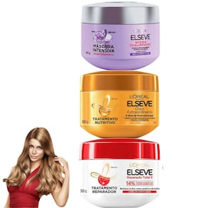 Cronograma Elseve Hidratação Nutrição Reconstrução Reparação Bem vindo a a loja Flocus. É um prazer tê-lo a como nosso a cliente ATENÇÃO: Anúncio variável. Escolha os itens que melhor lhe atender para montar seu cronograma capilar com as linhas Elseve de Loreal Paris CONTEÚDO DO KIT: 1 Creme de Tratamento para Hidratação - 300g 1 Creme de Tratamento para Nutrição - 300g 1 Creme de Tratamento para Reconstrução - 300g Para que serve o cronograma capilar O cronograma capilar serve para repor a massa capilar, lipídios oleosidade natural do cabelo , vitaminas, nutrientes e minerais perdidos pelos fios. Essa perda é causada por danos capilares como a poluição, químicas como alisamento e descoloração e uso excessivo de calor como secadores, modelador de cachos e chapinha. Quando o cabelo sofre esses danos, ele fica com uma aparência ressecada, com alta porosidade, quebradiço e áspero. Então, o cronograma capilar reverte essa situação. O cronograma capilar é dividido em 3 etapas. São elas: Hidratação, Nutrição e Reconstrução. Glycolic Gloss: garante 3X mais gloss que resiste a 6 lavagens. Sua fórmula com pH Ácido rica em Ácido Glicólico, combate a porosidade e sela as cutículas para um cabelo visivelmente saudável e alinhado para um brilho gloss. cronograma: Por ser um tratamento com ácido, essa linha serve para Hidratação e Reconstrução . Hidra Hialurônico: preenche e retém hidratação profunda na fibra capilar para uma transformação instantânea dos fios. Com ação Preenchedora, retém a hidratação na fibra capilar por muito mais tempo, para manter o cabelo saudável, leve e solto. cronograma: Hidratação . Pure Hialurônico: para cabelos com raízes oleosas e pontas desidratadas, a linha Pure purifica as raízes e limpa profundamente a fibra capilar. Sua fórmula é rica em Ácido Salicílico, que garante o controle da oleosidade nas raízes, e Ácido Hialurônico que possui uma hidratação preenchedora profunda, do comprimento até as pontas. cronograma: Hidratação . Cachos Longos dos Sonhos: preenche o cabelo com nutrição profunda da raiz até as pontas, para tratar, selar e salvar os seus últimos 3 centímetros dos seus cachos. Ideal para cachos mais longos, fortes e definidos desde o primeiro uso. cronograma: Nutrição . Óleo Extraordinário: a linha foi desenvolvida para nutrir cabelos secos e opacos, promove suavidade infinita, brilho excepcional e vitalidade deslumbrante. Com a tecnologia de micro óleos de argan e marula nutre os fios, sem pesar. cronograma: Nutrição . Longo dos Sonhos: anti-corte age no comprimento dos cabelos, lacrando as pontas, salvando os últimos 3 centímetros. Repara os fios e sela as pontas, para que você diga adeus ao comprimento danificado, salvando os últimos centímetros para evitar o corte. cronograma: Reconstrução . Reparação Total 5: atua contra os principais danos: Quebra, Rigidez, Opacidade, Ressecamento e Pontas Duplas. Ajuda a reduzir fios quebradiços, trazendo mais brilho e flexibilidade ao cabelo. Remove as pontas duplas e recupera a estrutura da fibra deixando os fios uniformes, selados e protegidos como se fosse uma cicatrização da fibra capilar. cronograma: Reconstrução . Agradecemos por escolher a Loja Flocus e por confiar em nós para cuidar da beleza dos seus cabelos. Em caso de dúvidas, favor enviar sua pergunta Flocus