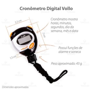 Por isso, conte com o cronômetro da Vollo que além de te ajudar a medir o tempo, possui hora, data, alarme, precisão de 1/100 segundos e ainda contém cordão para transporte.