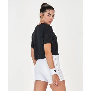 Básico, mas não tão simples. A T-shirt cropped já é sinônimo de estilo, quando confeccionada em tecido personalizado, ainda mais. Os micro furos garantem maior respirabilidade e o decote redondo com caimento solto, maior conforto.