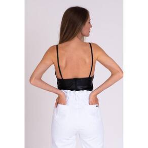 Cropped Couro Eco. Esta peça possui bojo, alça fina, seu decote tem um detalhe transpassado, ziper de fecho na parte de trás. O cropped de couro se torna mais sério e formal dependendo da combinação da peça de baixo. Mesmo com cortes retos e cara de formal, basta uma legging estampada para deixar o look bem básico e casual. Combinações com short ou calça jeans, saias fluidas e tecidos mais leves são uma ótima pedida para seus looks. Código do Produto: 000266 Marca: Khalli