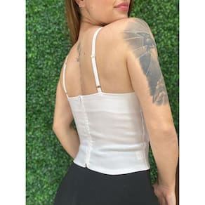 Detalhe: Cropped Com Alças Finas de Regulagem Com Bojo e Zíper Atrás.