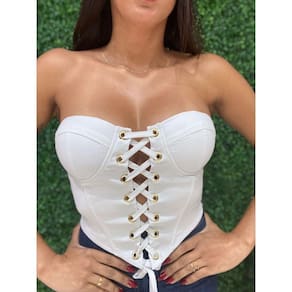 Detalhe: Cropped Trançado na Frente Sem Mangas Com Bojo e Zíper atrás.