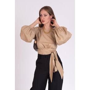 Cropped Tricoline Manga Balão, possui gola redonda e detalhe de fechamento nas costas com fita do mesmo tecido para amarração em laço ou nó. As blusas com manga balão são aliadas para quem deseja alinhar o corpo, pois trazem volume a região dos ombros e isso equilibra o volume do quadril, criando um efeito de harmonia. Código do Produto: 88297 Marca: Khalli