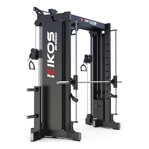 A Cross com Smith Kikos Pro Ttms22 possui uma estrutura robusta com 2 torres, cada uma com 92 kg de carga. Auxilia no fortalecimento e definição muscular, promovendo o ganho de massa muscular magra.