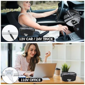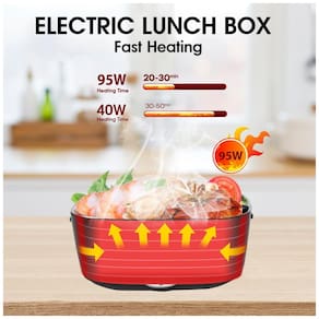 MATERIAL DE QUALIDADE ALIMENTAR A lancheira elétrica é feita de plástico PP de qualidade alimentar e recipiente de aço inoxidável 304. Possui forte resistência ao calor e atende aos padrões de segurança de materiais dietéticos. Tempo de aquecimento e garantia de segurança O tempo de aquecimento é um pouco longo, tempo de aquecimento 30 50 minutos em temperatura normal.porque sua potência 40W. Mas então seu carro estará mais . Nota Não adicione líquido à base da lancheira para evitar curto circuito Tasty Food Match Cool Lunch Box Diga adeus ao Fast Food Nossa lancheira elétrica portátil contém dois plugues diferentes um para Trabalho , Casa 110V e outro para Carros , Caminhões 12V. Uma maneira divertida e saudável de almoçar Prepare suas próprias refeições saudáveis favoritas e, em seguida, escolha o cabo para uso no carro ou para uso doméstico para conectar a lancheira. Indicador aceso, significa que a comida está esquentando. Fácil de limpar A lancheira elétrica do carro embutida em uma bandeja de aço inoxidável 304 de alta qualidade. Fácil de limpar, você também pode lavar bandejas de aço inoxidável na máquina de lavar louça
