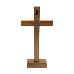 Produto confeccionado em madeira com medalha de São Bento em Ouro Velho, trazendo um acabamento fino e real ao produto.