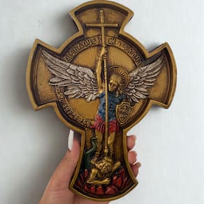 Cruz São Miguel Arcanjo Escultura Decorativa 22 cm em Resina