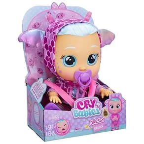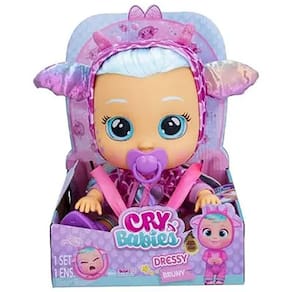 As Cry Babies Dressy são bonecas super fofas que choram lágrimas de verdade e emites sons iguais ao de um bebê de verdade! Basta tirar a chupeta da boca que ela chora cada vez mais e não para até ganhá-la de volta! Brincar de boneca irá ficar muito mais divertido com a Bruny, a dragãozinha super estilosa com sua própria roupinha, sapatos fashion e um lindo cabelo!