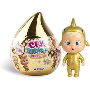 A nova Edição GOLD do Cry Babies Magic Tears está aqui! Há mais de 7 caracteres exclusivos para coletar, incluindo um RARE FIND! Você pode recolhê-los todos?!? Cada um escondido dentro de sua própria casa em forma de lágrima gold. Cada boneca é vestida de GOLD e vem com 4 acessórios principais: uma mamadeira de bebê, chupeta, pulseira e cadeira, além de 2 acessórios exclusivos, um cobertor personalizado e uma folha de adesivo. Você será o sortudo de desemarrá-los a todos? Ou talvez você tenha a sorte de encontrar o personagem raro com um acessório extra! Dê-lhes água usando sua mamadeira, aperte sua barriga e eles vão chorar lágrimas de OURO!