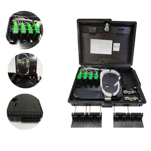 Características do produto: Estrutura completamente fechada e resistente material pc+abs À prova de umidade, água, poeira e antienvelhecimento Nível de proteção ip55 Suporte para adaptador sc Facilidade de instalação e manutenção painel de distribuição giratório Pode ser instalada na parede ou no poste indoor e outdoor Pronta para ambiente aéreo outdoor com isolamento e proteção uv Bandeja para acomodação de splitter ou emendas de fibra óptica Painel para acomodação de adaptadores ópticos sc Suporte para acomodação de cabos ópticos Ideal para acomodação em posição vertical Permite até 02 conexões de splitter óptico mini module: 1:8 total de 16 saídas