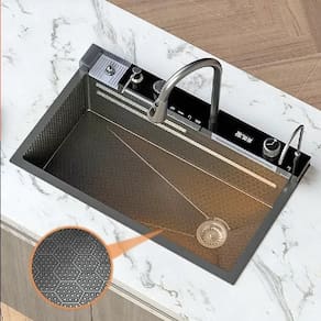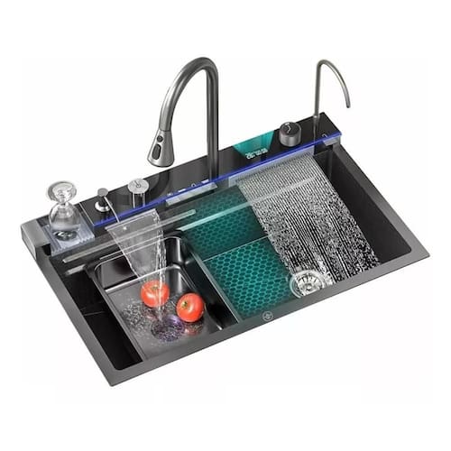 Itens que acompanham: - 1 cuba ao inox - 1 dispenser detergente - 1 torneira com cascata - 1 limpador de copos - 1 vlvula com sifo - 1 cesta em inox Marca: Não Informado