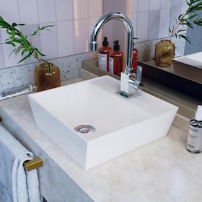 A cuba Volcano tem seu design quadrado com as laterais angulares, especial para pequenos espaços e um excelente escoamento de água, é fabricada em mármore sintético com acabamento em Hard Lacca PU, material bem semelhante a louça, muito resistente e mais econômico!!
