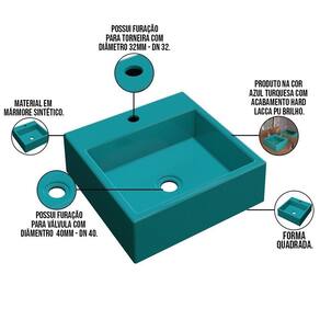Aqui apresentamos a você a Cuba De Apoio Para Banheiro Quadrada Q355 35x35cm C01 Azul Turquesa - Lyam Decor com um escoamento de água excelente que proporciona mais comodidade e versatilidade para os usuários do lavatório. Além de enriquecer o visual do seu banheiro e agregar valor ao ambiente.