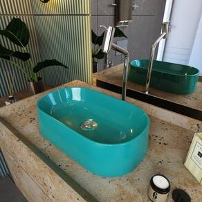 Formato: Oval | Tipo de Cuba: Apoio | Material: Mármore Sintético | Acabamento: Hard Lacca PU | Escala de Brilho: Brilho | Possui Ladrão: Não | Possui Furação para Torneira: Sim | Diâmetro do Furo para Torneira: (32mm) - DN 32 | Diâmetro do Furo para Válvula: (40mm) - DN 40 | Limite de unidades por venda: É possível comprar até 1 unidade por venda. | Quantidade máxima de pedido: 1 | Baterias são necessárias?: false Cor: Azul Turquesa