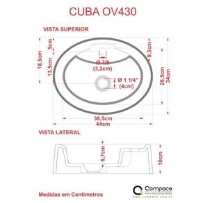 Sobre o ProdutoCuba de Apoio Oval Onix 44X34cm AmareloDescrição do ProdutoA cuba O43 Ônix tem seu design tradicional, oval e um excelente escoamento de água, é fabricada em mármore sintético com acabamento em Hard Lacca PU, material bem semelhante a louça, muito resistente e mais econômico!!Itens Inclusos:1 Cuba de ApoioInformações Logísticas:Vol.01 - Comp.: 49cm - Prof.: 41cm - Alt.: 17,5cm - Peso Bruto: 4,12KgObservações:Não acompanha acessórios decorativos. Imagens meramente ilustrativas.Informações Técnicas / Características:- Cor: Amarelo- Marca: Compace- Modelo: CAOV430- Linha: Conect- Formato: Oval- Tipo de Cuba: Apoio- Material: Mármore Sintético- Acabamento: Hard Lacca PU- Escala de Brilho: Brilho- Possui Ladrão: Não- Possui Furação para Torneira: Sim- Diâmetro do Furo para Torneira: (32mm) - DN 32- Diâmetro do Furo para Válvula: (32mm) - DN 32 - Comprimento: 44cm- Largura: 34cm- Altura: 10cm - Peso Líq.: 3,75Kg- Recomendações de Uso, Manutenção e Limpeza: Utilize flanela seca ou pano macio, levemente umedecido com água. Evite contato com produtos químicos e abrasivos (solventes, thinner, acetona etc) e não utilize nenhum tipo de esponja de aço. Para maior brilho, recomendamos a utilização de cera automotiva n 2.- Necessita de Montagem: Sim / Acompanha Manual de Montagem- Complexidade da Montagem: Média: pode ser montado por mais de uma pessoa e/ou necessite de maior conhecimento para montagem.- Garantia: 6 meses Formato: Oval | Tipo de Cuba: Apoio | Material: Mármore Sintético | Acabamento: Hard Lacca PU | Escala de Brilho: Brilho | Possui Ladrão: Não | Possui Furação para Torneira: Sim | Diâmetro do Furo para Torneira: (32mm) - DN 32 | Diâmetro do Furo para Válvula: (32mm) - DN 32 | Limite de unidades por venda: É possível comprar até 1 unidade por venda. | Quantidade máxima de pedido: 1 | Baterias são necessárias?: false Cor: Rosa