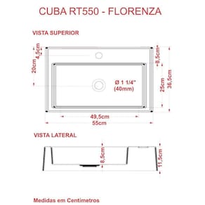 Sobre o ProdutoCuba de Apoio Retangular Florenza 54X36,5cm AmareloDescrição do ProdutoA cuba RT55 tem seu design diferenciado e um excelente escoamento de água, é fabricada em mármore sintético com acabamento em Hard Lacca PU, material bem semelhante a louça, muito resistente e mais econômico!!Itens Inclusos:1 Cuba de ApoioInformações Logísticas:Vol.01 - Comp.: 61cm - Prof.: 43cm - Alt.: 17cm - Peso Bruto: 10,6KgObservações:Não acompanha acessórios decorativos. Imagens meramente ilustrativas.Informações Técnicas / Características:- Cor: Amarelo- Marca: Compace- Modelo: CART550- Linha: Conect- Formato: Retangular- Tipo de Cuba: Apoio- Material: Mármore Sintético- Acabamento: Hard Lacca PU- Escala de Brilho: Brilho- Possui Ladrão: Não- Possui Furação para Torneira: Sim- Diâmetro do Furo para Torneira: (32mm) - DN 32- Diâmetro do Furo para Válvula: (40mm) - DN 40 - Comprimento: 54cm- Largura: 36,5cm- Altura: 11,5cm - Peso Líq.: 9,9Kg- Recomendações de Uso, Manutenção e Limpeza: Utilizar flanela seca ou pano macio, levemente umedecido com água. Evite contato com produtos químicos e abrasivos (solventes, diluente, acetona etc) e não utilize nenhum tipo de esponja de aço. Para maior brilho, recomendamos a utilização de cera automotiva n 2.- Necessita de Montagem: Sim / Acompanha Manual de Montagem- Complexidade da Montagem: Média: pode ser montada por mais de uma pessoa e/ou necessite de maior conhecimento para montagem.- Garantia: 6 meses
