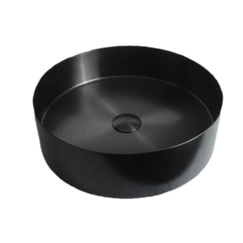 - marca stillus home - material: aço inox 304 - cor: preto escovado - diâmetro: 40cm - altura: 12cm - pintura eletrostática: anti-risco e anti-ferrugem - acompanha: válvula click preta e sifão com sistema antiodor