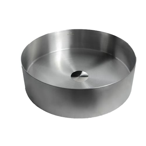 - marca stillus home - material: aço inox 304 - cor: escovado - diâmetro: 40cm - altura: 12cm - pintura eletrostática: anti-risco e anti-ferrugem - acompanha: válvula click escovada e sifão com sistema antiodor