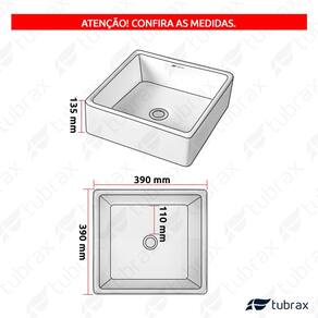 - Dimensão (C x L x A): 39 cm x 39 cm x 13,5 cm (dimensões externas)