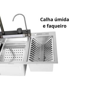 Cuba de cozinha gourmet automática multifuncional completa com calha lateral escovada