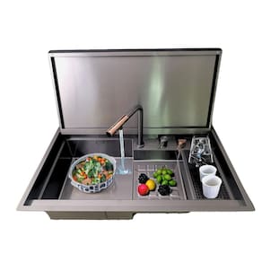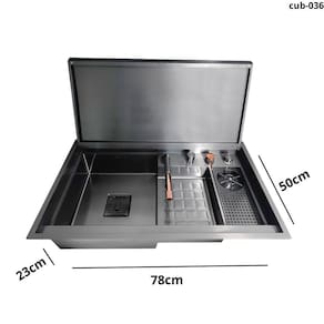 Cuba cozinha gourmet aço inox 304 preta moderna com tampa Esta cuba gourmet de cozinha em aço inox 304 é o ápice da modernidade e funcionalidade, projetada para quem valoriza praticidade e sofisticação. Com sistema automatizado e lavador de copos integrado, possui uma torneira moderna com três tipos de jato, adaptando-se a diferentes necessidades de uso. Para apresentar a mesma, salientam-se os seguintes pontos: Material de qualidade: Cuba produzida em aço inoxidável 304 de alta qualidade, com acabamento em pintura eletrostática com nanotecnologia, resulta em um produto antiferrugem, antirrisco e resistente ao desgaste. Tampa funcional: A cuba possui uma tampa que pode ser fechada após a utilização. Basta pressionar a torneira para baixo e pronto agora é só abaixar a tampa da cuba, que conta com amortecedor soft close, e sua cozinha recebe um ar clean de muita modernidade, ajudando a manter a sua cozinha organizada a qualquer hora do dia. Super torneira: Elegante torneira gourmet extensível em aço inox 304, retrátil e com 3 modos de pulverização. Mais facilidade na limpeza e na higienização de alimentos, além de praticidade na organização da pia. Acionamento do ralo: O sistema de acionamento do ralo permite que você drene facilmente a água, apenas ativando um botão e mantendo as mãos secas. Torneira filtro: Acompanha uma segunda torneira para água filtrada. O filtro de carvão ativado pode ser instalado facilmente, mas deve ser comprado separadamente. Especificações: Medidas externas: 78 x 50 x 23 cmmedidas internas: 74 x 43 x 22 cmmaterial: aço inoxidável 304acabamento: pintura eletrostática preta com nanotecnologiaespessura: 3 mmaplicação: embutir ou sobreporfuração da torneira: embutidafuração do dosador: 2,8 cmfuração do lavador de copos: 2,8 cmfuração da válvula: 4 1/2válvula escape/ladrão: simcapacidade do dispenser de detergente: 500 mlindicação: cozinha, churrasqueiracompatível com triturador: simantirruído: simacessórios inclusos: simimportante: Marca: Não Informado Ean: 7891243570213