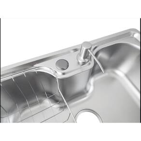 esta peça contém bordas cortantes. Manusear com cuidado. Não usar ácido muriático, água sanitária ou qualquer outro solvente para lavar objetos na pia. Na reforma ou construção, proteger a pia para não deixar sobre a mesma pó de cimento ou gesso. Enxaguar e secar bem a peça após o uso. Nunca deixar objetos metálicos sobre a peça por períodos muito longos, para evitar a corrosão. Para manter o brilho da sua pia, recomendamos o uso da pasta para polir e remover manchas em superfícies de aço inoxidável. Acompanham acessórios que auxiliam na preparação e higiene dos alimentos e ainda dão um toque de beleza e requinte ao produto: