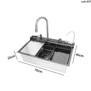 Esta cuba gourmet de cozinha em aço inox 304 é o ápice da modernidade e funcionalidade, projetada para quem valoriza praticidade e sofisticação. Com sistema automatizado toda comandada com botões, possui dois jatos de água em cascata para lavagem de louças e alimentos, adicionando um toque elegante ao design. Inclui um lavador de copos integrado para facilitar a limpeza de utensílios delicados, além de uma torneira com três tipos de jato, adaptando-se a diferentes necessidades de uso.