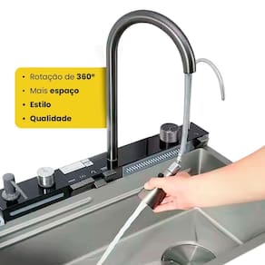 A Cuba Gourmet Cascata Brinovar combina design moderno, resistência e praticidade para elevar o padrão da sua cozinha. Fabricada em aço inox 304 com acabamento texturizado tipo favo de , oferece alta durabilidade, proteção contra riscos acidentais e fácil manutenção. Seu visor digital é o grande diferencial, proporcionando tecnologia e praticidade no uso diário. Versátil, pode ser instalada de forma sobreposta ou embutida, adaptando-se perfeitamente a diferentes estilos de projeto. Ideal para quem busca sofisticação, funcionalidade e eficiência no dia a dia. Especificações Técnicas Marca: Brinovar Material da cuba: Aço inox 304 Acabamento: Escovado acetinado favo de Espessura da cuba: 3 mm Medidas externas: 75 x 45 x 22 cm Medidas internas: 70 x 35 x 22 cm Borda: 2,5 cm Capacidade: 54 litros Pressão da água: min. 10 mca max: 60 mca Temperatura da água: min: 5C max: 75C Instalação: Sobrepor ou embutir Escape/ladrão: Sim Anti-ruído: Sim, possui manta no fundo e laterais Aquecedor Compatível: Elétrico, solar e gás Tipos de jato da torneira: Ducha, aerado e jato duplo : 90 dias Conteúdo da embalagem: Cuba Cascata Smart Torneira monocomando Kit sifão com tampa Dispenser de sabão Lava copos Cesto fechado Cesto vazado Tábua de madeira Saída para filtro Botão para drenagem Marca: Não Informado