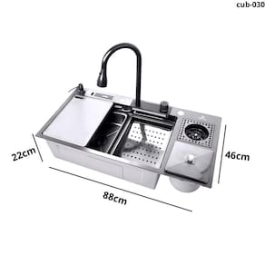 Esta cuba gourmet de cozinha em aço inox 304 é o ápice da modernidade e funcionalidade, projetada para quem valoriza praticidade e sofisticação. Com um sistema monocomando, possui um jato de água em cascata para lavagem de louças e alimentos, adicionando um toque elegante ao design. Inclui também um lavador de copos integrado, facilitando a limpeza de utensílios delicados, além de uma torneira com três tipos de jato, adaptando-se às diferentes necessidades de uso.