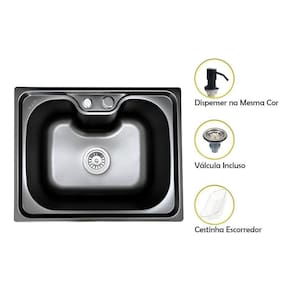 - Dosador de sabão na mesma cor da cuba, de 300ml com sistema recarrega fácil. Não é necessário retirar o reservatório para reabastece-lo. - Válvula 4 1/2 totalmente compatíveis com o uso de trituradores elétricos . - Escorredor de pratos - Cuba projetada para aplicação SOBREPOSTA ou EMBUTIDA.