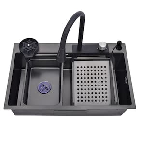 Cuba Cozinha Gourmet Premium Cascata Preto Grafite com Torneira e Lavador de Copos - Aço Inox 304